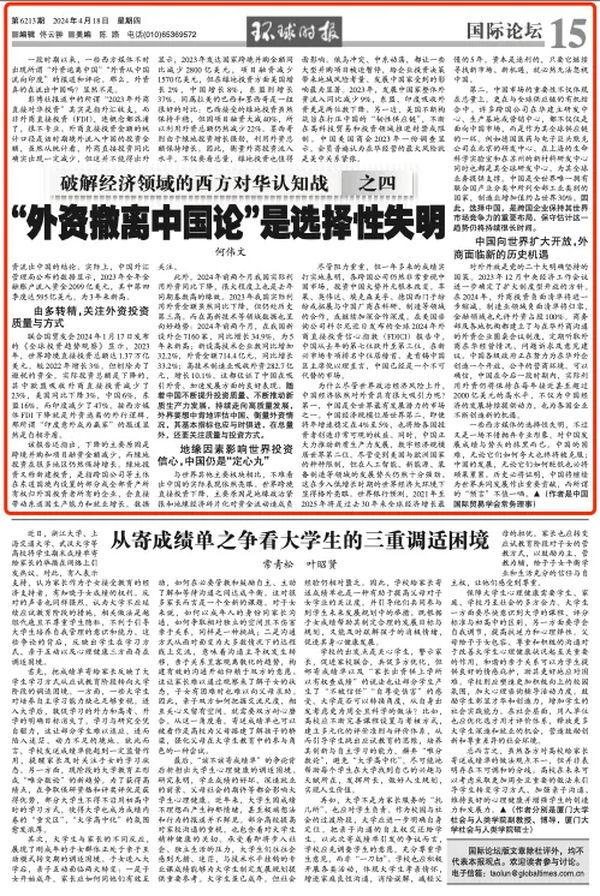 环球时报刊文:“外资撤离中国论”是选择性失明