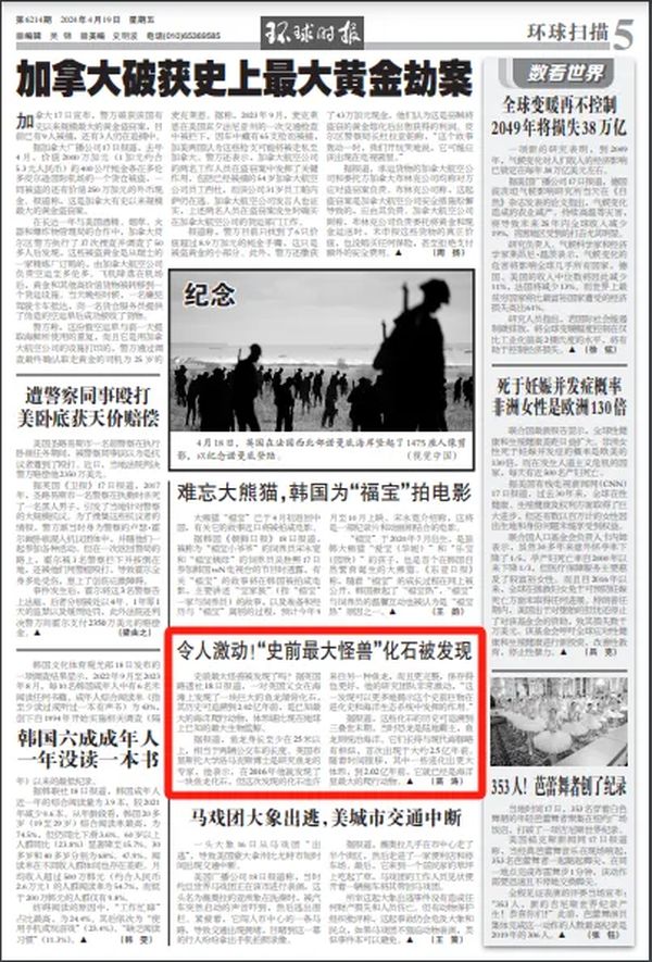 令人激动!“史前最大怪兽”化石被发现