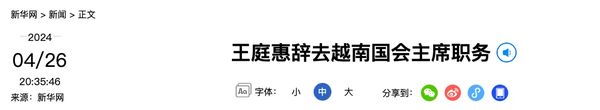 王庭惠辞去越南国会主席职务据越通社26日报道,越南共产党第十三届中央委员会当天召开会议,……