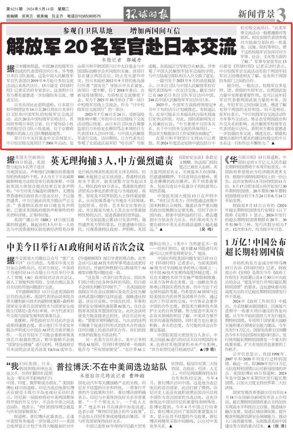 在笹川和平财团日文网站可以看到,其2024年度活动安排中就包括日中校官级交流项目。“此类军事交流活动一般都遵循对等原则,相互安排代表团参观对方陆海空部队的一些基地、设施、院校等单位,便于这些校级军官加深对对方军事、社会、文化等方面的了解。”军事专家张军社13日接受《环球时报》记者采访时表示,中日校级军官交流活动有助于两国年轻军官之间增进相互了解,也有利于两国防务部门之间的合作。