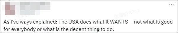 还有网友直言,美国总是做它想做的事,而不是做对大家都有利的事,或者体面的事。