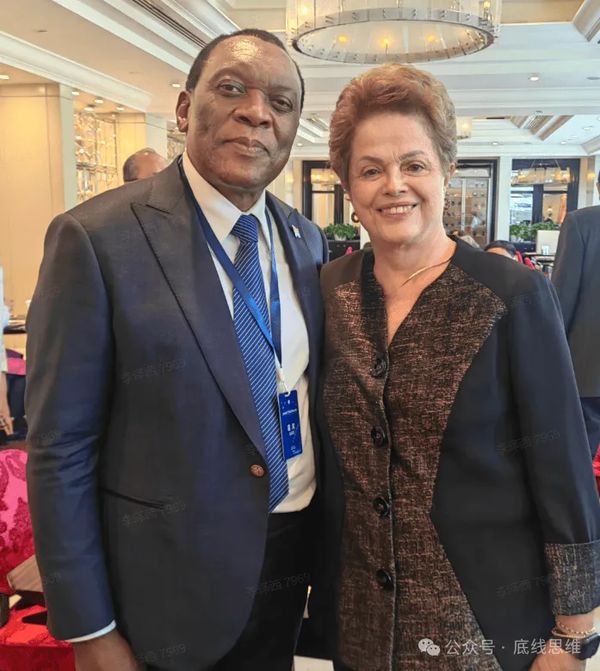5月20日“金砖国家货币和金融体系改革”对话会期间,谢胜文与新开发银行行长迪尔玛·罗塞夫合影