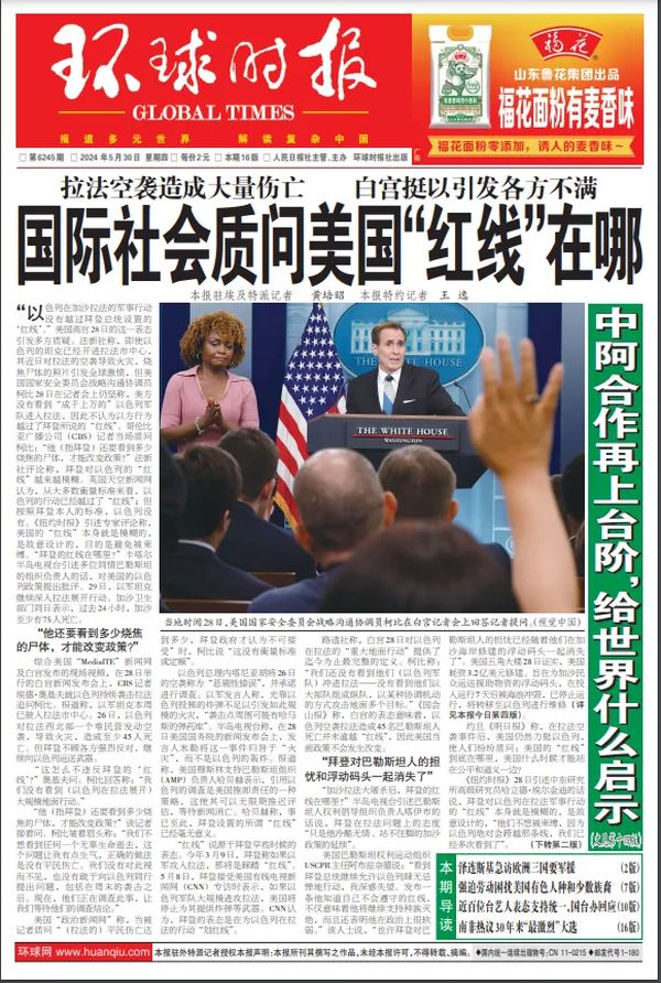 约旦《明日报》称,在拉法空袭事件后,美国仍然力挺以色列,使人们纷纷质问:美国的“红线”到底在哪里,美国什么时候才能站在公平和道义一边?