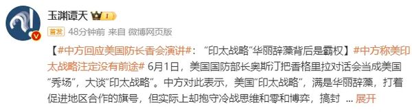 中方回应美国防长“香会”演讲:“印太战略”华丽辞藻背后是霸权