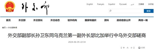 2024年6月5日,外交部副部长孙卫东同乌克兰第一副外长瑟比加在北京举行中乌外交部磋商。……