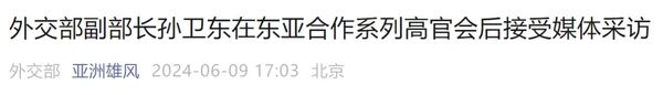 当地时间2024年6月8日下午,外交部副部长孙卫东在老挝万象出席东亚合作系列高官会后,现场接受记者采访。