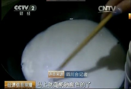 据央视新闻11月2日报道,只要将神奇的“羊肉粉”放一点点在水里,浓郁的羊肉香味便扑面而来,再加一点增白剂,清水瞬间就变为“浓香羊汤”了。
