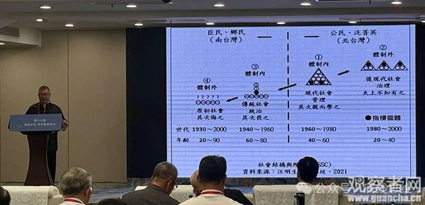 要改变的南台湾,除了③传统社会,也包括最左边被民进党长期洗脑的——我这边特地标上了问号——其中包括我的官员学生,也包括我在台湾中山大学开创的研究所,他们基本上全面绿化了。必须承认,在台湾这块,民进党是在认真工作的,而且他们埋头深耕,只做不说,而蓝营是整天在台面上喊。