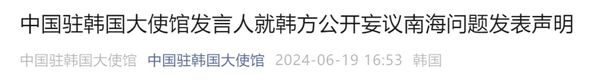 我驻韩大使馆:韩国不是南海问题的当事方,近来却频频在南海问题上说三道四、指手画脚,伤害了中国人民的感情。……
