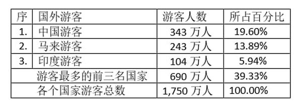 进入泰国的国外游客中,以中国游客人数为最多,达到343万人,其次是马来人,人数243万人,印度游客位居第三,达到114万人,这是由泰国旅游暨体育部门公布的数据中所获知的讯息。