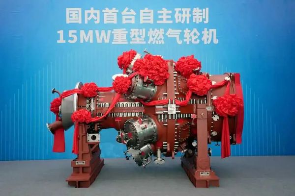 7月4日我国首台自主研制15兆瓦重型燃气轮机——“G15”在四川德阳总装下线……