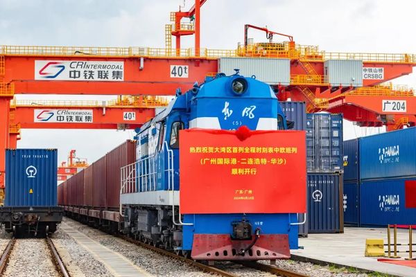 6月19日,“广州国际港—华沙”全程时刻表中欧班列从广州国际港开出。图源:新华社