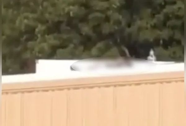 英国天空新闻网发布视频称,有目击者看到屋顶上疑似枪手的尸体。美国全国广播公司、《纽约邮报》等美国媒体也发布了这段视频画面。图源:外媒视频截图