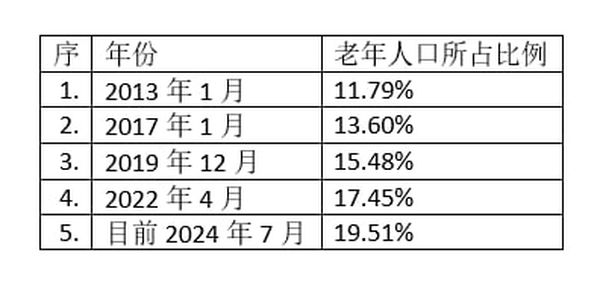 这65岁及其以上的老年人口,现在已占韩国国内总人口的19.51%的比例。这老年人口的比例在最近10多年来的增长情况如下表: