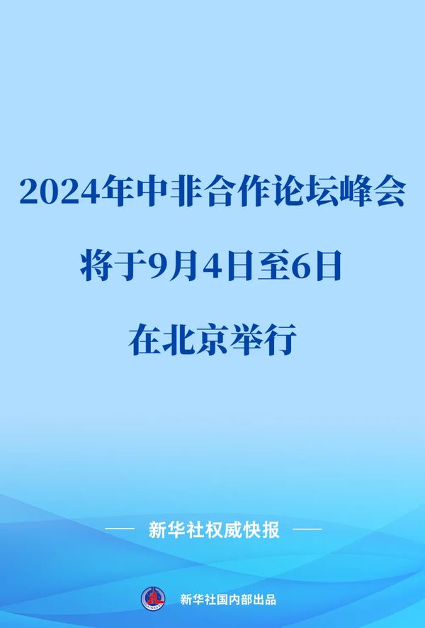 2024年中非合作论坛峰会将于9月4日至6日在北京举行
