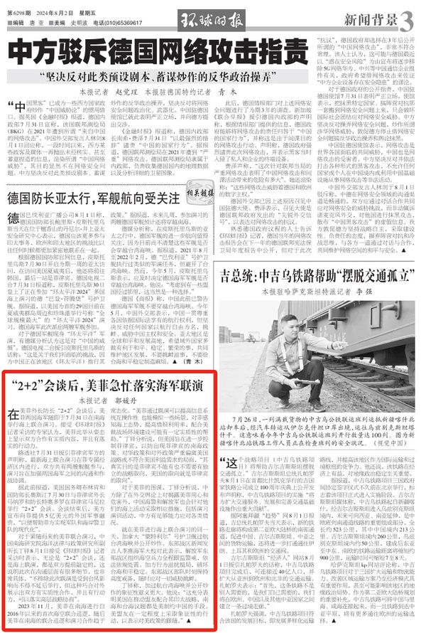 对于紧随而来的美菲联合演习,中国南海研究院海洋法律与政策研究所副所长丁铎8月1日接受《环球时报》记者采访时表示,无论是“2+2”会谈,还是海上联演,都是双方提前敲定的,这说明此次在沟通层面有很多细节,也非常具体,“不排除此次联演是受到台风影响而不得不延后举行,但这种巧合对外展示出双方有实质性合作,并且有行动力,可以落实高层战略协商”。