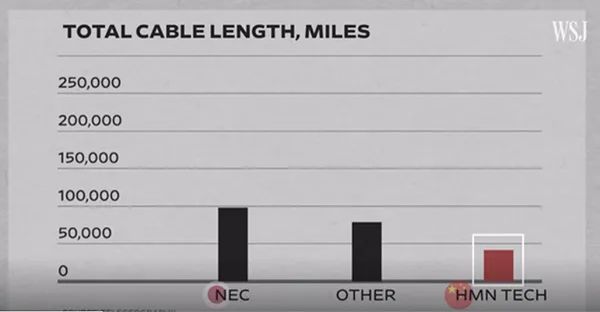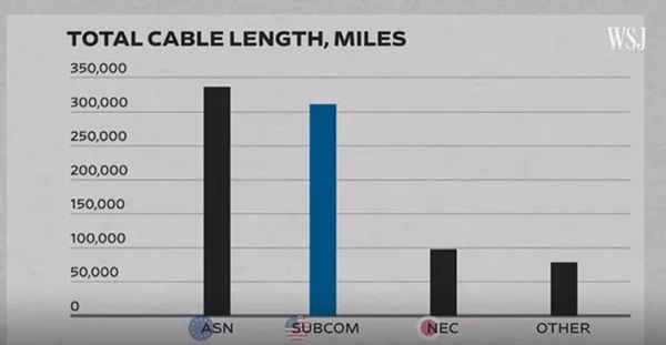 中国刚进入海底光缆行业时,85%的海底光缆都由欧洲、美国和日本的公司铺设。《华尔街日报》视频截图