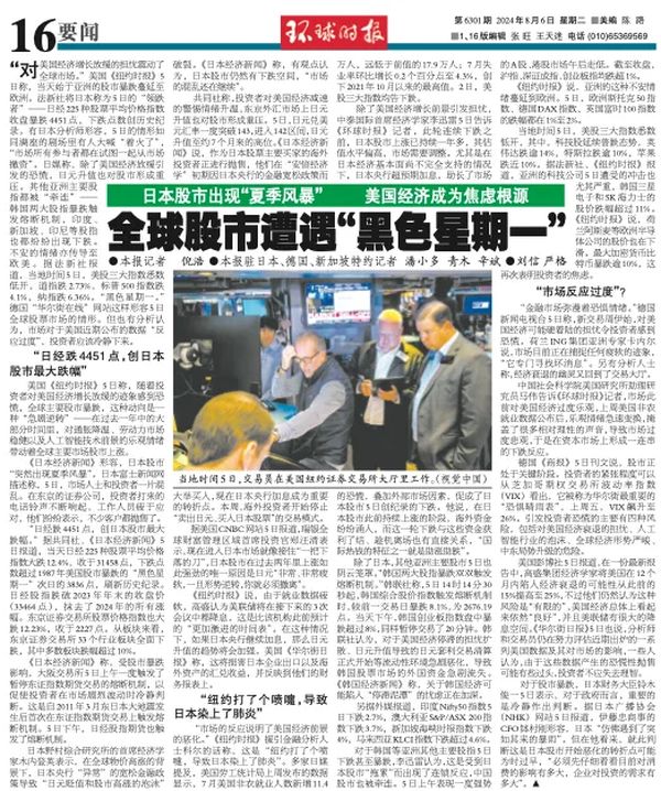 全球股市遭遇“黑色星期一”,日本股市出现“夏季风暴”,美国经济成为焦虑根源