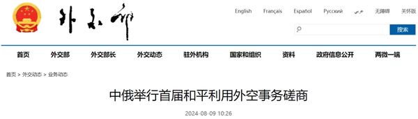 2024年8月8日,中俄首届和平利用外空事务磋商在莫斯科举行。……