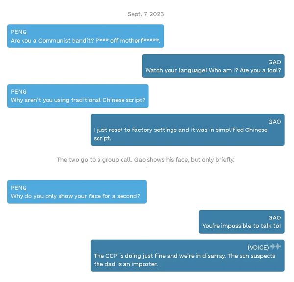 甚至于,在高某被德国警察逮捕后,王靖渝还一度对弗兰克谎称,是高某把自己的家人“出卖”给了“中国政府的特工”。王靖渝还用虚假的荷兰移民局账号将这一说法告诉了高某的儿子,想让高某的儿子录视频与他父亲断绝关系。而高某的儿子还真一度照做了……