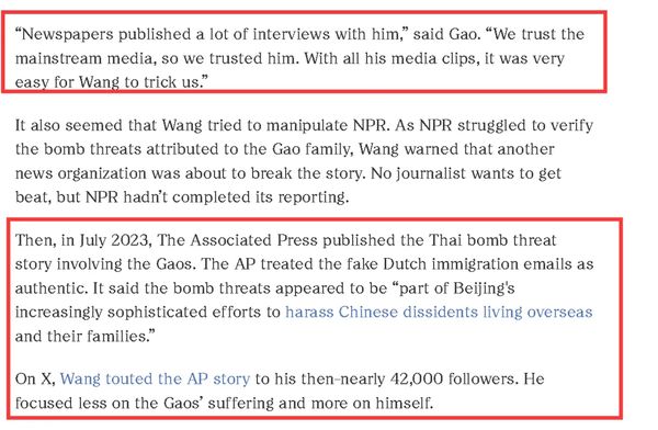 结果,美联社的报道,又进一步提升了王靖渝在反华分子圈子里的知名度。