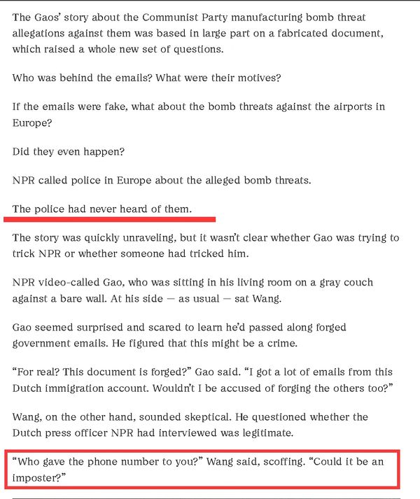 不过,最让高某百思不得其解的是,为啥其他西方媒体,比如美联社,还有那些转发美联社报道的美国《华盛顿邮报》,英国《独立报》等媒体,没有发现王靖渝是个骗子,反而一而再再而三地报道他,给他站台背书——包括连美国国家公共广播,不仅曾经给他背过书,甚至这次,如果不是弗兰克多问了一句,不是荷兰方面多回应了一句,恐怕也被他给“骗”了。