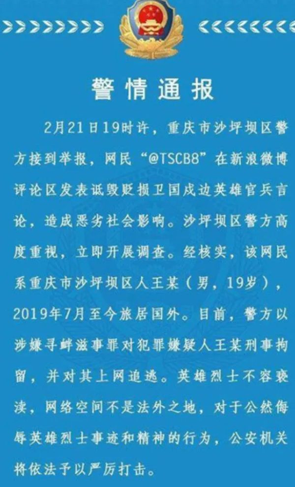 早在2021年时,在这个反华分子还是一个19岁的“反华新人”时,耿直哥就曝光过他。他叫王靖渝,曾因在当年2月恶毒侮辱在中印边境加勒万河谷牺牲的解放军战士,引起众怒。虽然他当时已经不在中国,但重庆警方还是决定对他追逃。