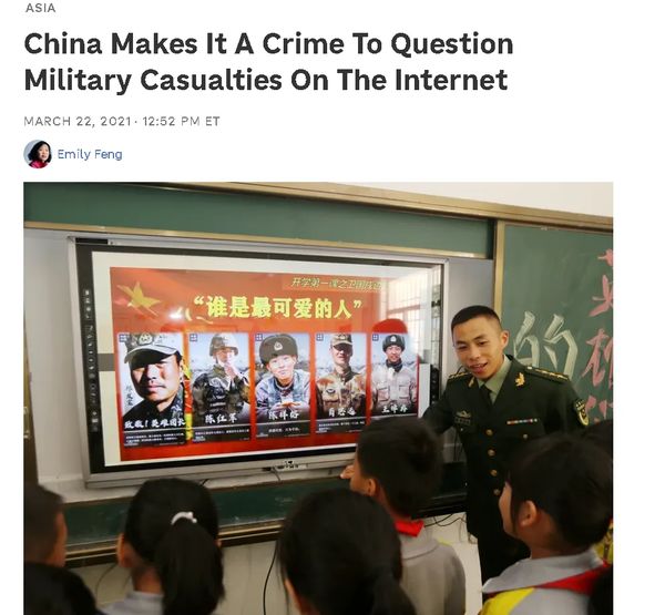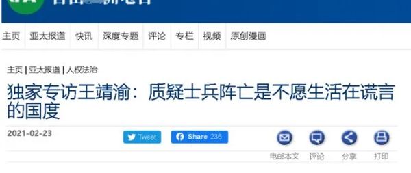 这家美国媒体,是“美国国家公共电台”。在2021年王靖渝侮辱解放军烈士后,这家美国媒体的记者冯哲芸,为了抹黑中国那年新出台的侵害英雄烈士名誉、荣誉罪,不仅也采访了王靖渝,还利用中美两国的语言信息差,将耿直哥前面提到的王靖渝对烈士们恶毒的辱骂,洗白成了是在“质疑死亡人数”,给他背书,而王靖渝也在境外的社交账号上立刻抱住了这家美国媒体的大腿。