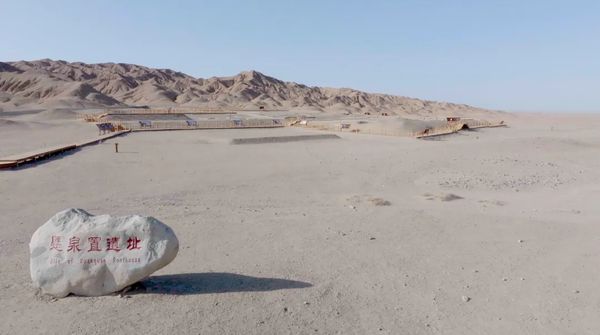 悬泉置,是汉帝国在河西走廊上设置的官方驿站之一,先后出土了7万多件文物,包括2.3万枚有文字的汉简。其中由18枚木简组成的接待简册,记录了公元前61年,长罗侯常惠带领使团出使乌孙国时,途经悬泉置期间食用的鸡、牛肉、鱼、酒等的数量和招待情况。