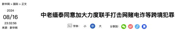 中老缅泰同意加大力度联手打击网赌电诈等跨境犯罪当地时间2024年8月16日,中国、老挝、缅甸、……