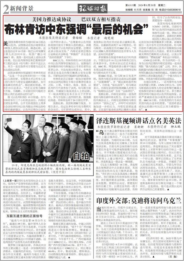 在地区局势上,一系列事件也为停火谈判蒙上阴影。CNN分析认为,在哈马斯前政治领导人哈尼亚和黎巴嫩真主党指挥官舒库尔遇袭身亡后,多方都在担忧伊朗可能会对以色列发起报复,这将严重威胁在加沙地带达成停火的希望。BBC18日称,目前美国的行为来自其国内政治选举的需要,“美国希望达成协议的倒计时比巴以双方都要快一些”。