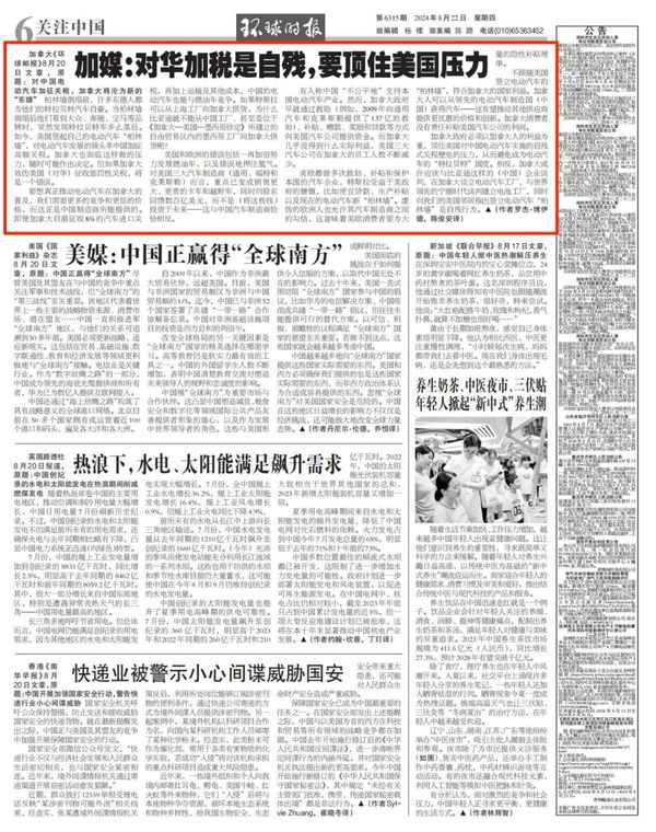 加拿大《环球邮报》8月20日文章,原题:对中国电动汽车加征关税,加拿大将沦为新的“东德”