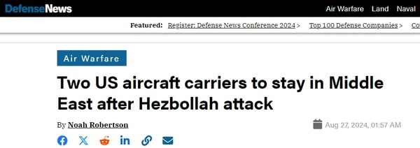相比之下,倒是大西洋方向的美国航母部署情况要略好点。就在8月24日,美国海军“艾森豪威尔”号、“杜鲁门”号与“福特”号航母在大西洋进行军械转移时一度组成三航母编队——虽然此后就各奔东西了。