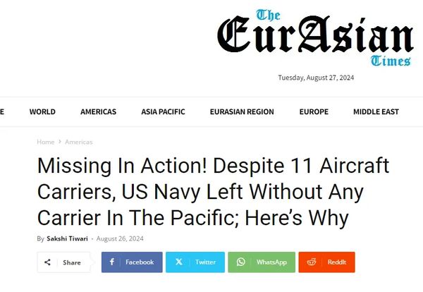 印度《欧亚时报》称,在印度洋-太平洋行动的美国海军没有一艘能用的航母,引起了军事观察员的担忧和震惊——因为美国海军在西太平洋的航母战力空白可能会让美国盟友认为“华盛顿无法完全履行其在亚洲的军事承诺,从而可能损害美国对其地区盟友的防务保证的可信度。”