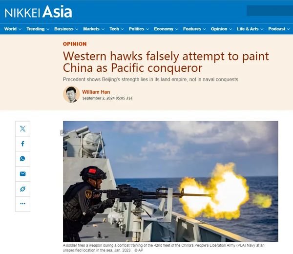 日本《日经亚洲评论》9月2日文章,原题:西方鹰派错误地试图将中国描绘成太平洋征服者
