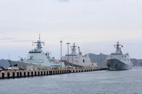 近日中国海军3艘战舰停靠在越南金兰湾,越南出动一个数百人的欢迎队伍迎接的消息引发了舆论关注。据悉,停靠的金兰湾的三艘解放军战舰分别是 071型船坞登陆舰“祁连山”号、“五指山”号、052D驱逐舰“合肥”号。此行三舰刚结束在非洲的“和平团结-2024”演习,途经越南金兰湾停靠进行补给,并对越南展开三天友好访问,以便加深巩固两军友好关系。