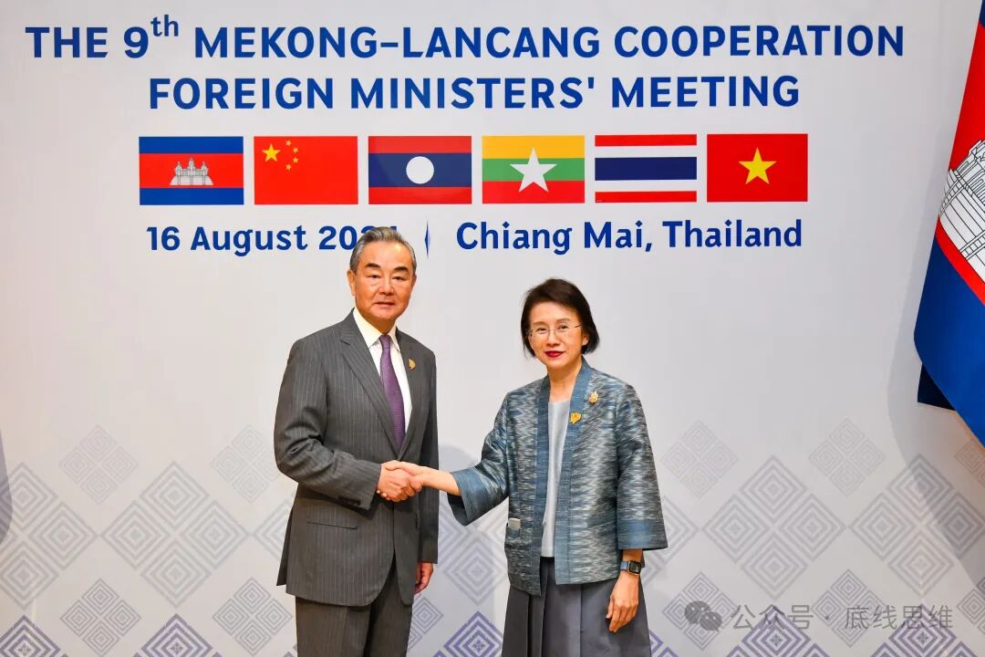 当地时间2024年8月16日,泰国清迈省,澜沧江-湄公河合作第九次外长会期间,泰王国外交部次长艾斯丽·彬塔图吉(右)向中国外交部长王毅(左)致意 视觉中国