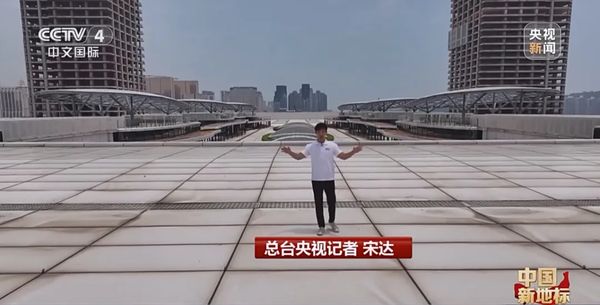 我现在站在了横琴口岸的楼顶,这里的视野非常开阔。我面前就是横琴粤澳深度合作区,正在热火朝天地建设。横琴口岸屋面广场的铺装、风雨连廊、园林景观都营造出了凤凰展翅的整体造型。横琴口岸的一侧连着横琴,另一侧我们看到它与澳门仅有一桥相连。这里是“一国两制”的交汇点和“内外辐射”的结合部,它也是促进澳门经济适度多元化发展的重要窗口。