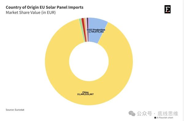 中国制造的太阳能电池板占据欧盟近90%市场份额。图源:Electi Facts