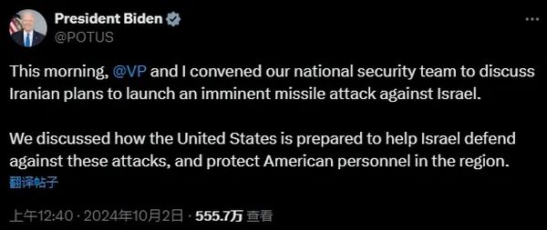 袭击发生后,拜登与哈里斯等高级官员举行安全会议 推文截图