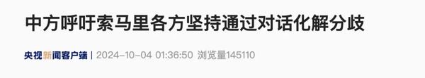 文章导读 中方呼吁索马里各方坚持通过对话化解分歧当地时间10月3日,联合国安理会就索马里局势举行会议。……
