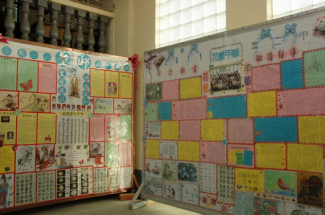 孔教学校学生的壁报办得多姿多彩 小学生在上课