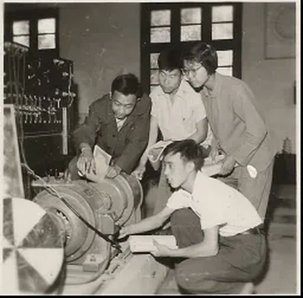 陈清泉在北京矿业学院电机实验室指导学生。(受访者供图)