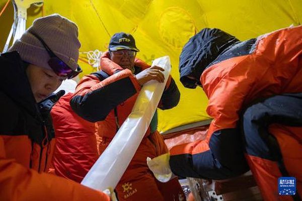 中国科学院的科学家们在海拔5千多米的普若岗日冰原顶部进行了一个多月的努力钻探,终于成功钻取到这一具有重大科学价值的冰芯。