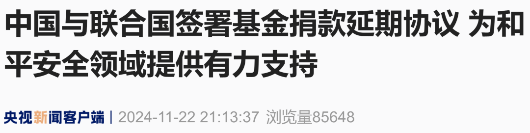 中国与联合国签署基金捐款延期协议,为和平安全领域提供有力支持11月21日,中国-联合国和平与发展基金指导委员会在纽约联合国总部召开第九次会议……