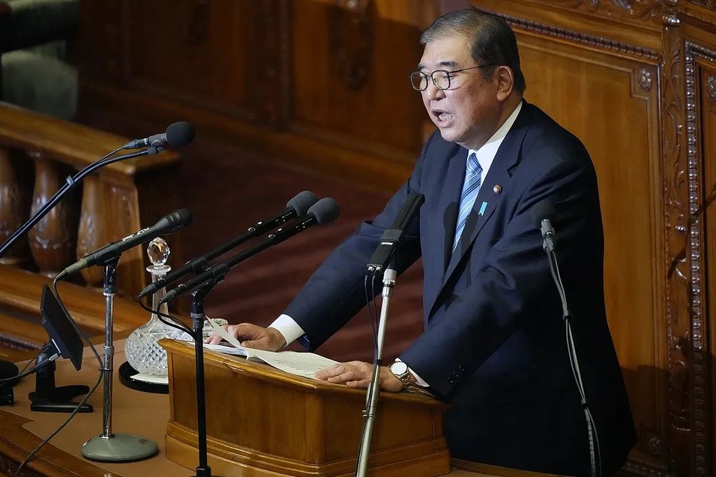 当地时间2024年11月29日,日本首相石破茂在国会特别会议上发表讲话。(视觉中国)