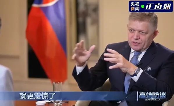 斯洛伐克总理菲佐接受采访 央视新闻视频截图