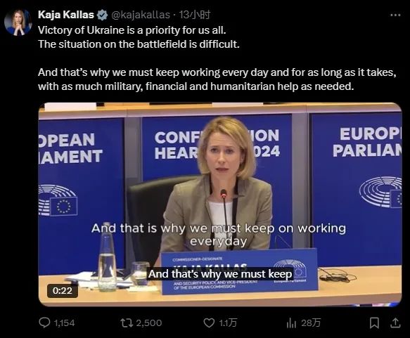 当地时间11月12日,欧盟外长卡拉斯妄言将让中国“付出代价”。推文截图