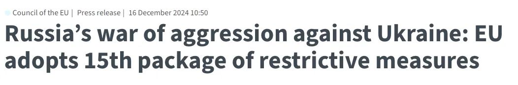 当地时间周一(16日),欧盟理事会发布公报表示,欧盟通过了第15轮对俄罗斯制裁措施。据路透社、法新社等报道,这份新的“一揽子”制裁措施中,以所谓“为俄罗斯提供军事物资”等为由,在制裁名单中新增了84个实体和个人,其中包括7个中国实体和个人。