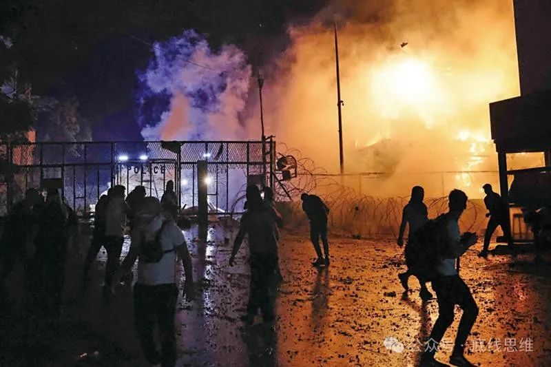 黎巴嫩示威者在美国大使馆门前纵火,抗议美国偏袒以色列。图源:法新社